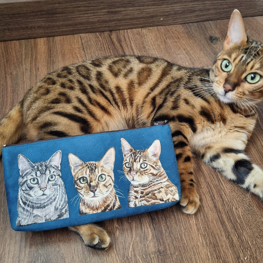 Ainsi, je réaliserai cette pochette compagnon pour vous, sur mesure, dans mon atelier en France. En effet, vous pourrez le personnaliser en choisissant la couleur du tissu. Ensuite, je peindrai le portrait d’un animal de votre choix selon une photo transmise par vos soins (par mail à lakitschlorraine@gmail.com).