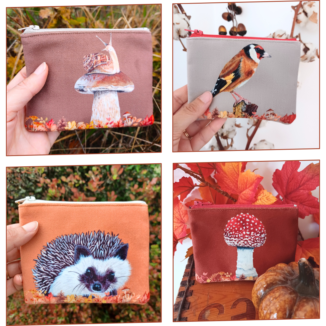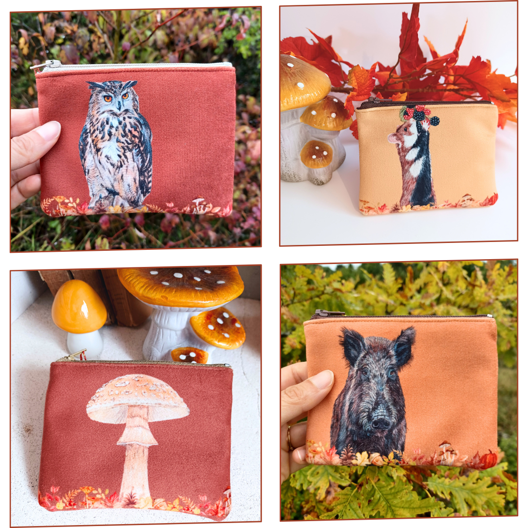 Les motifs sont des répliques de mes peintures originales. J’ai sélectionné un imprimeur français, pour la qualité de son velours et le rendu des couleurs sur le tissu. Ensuite, j’ai confectionné les porte-monnaies dans mon atelier, en prenant soin à la qualité des finitions.
