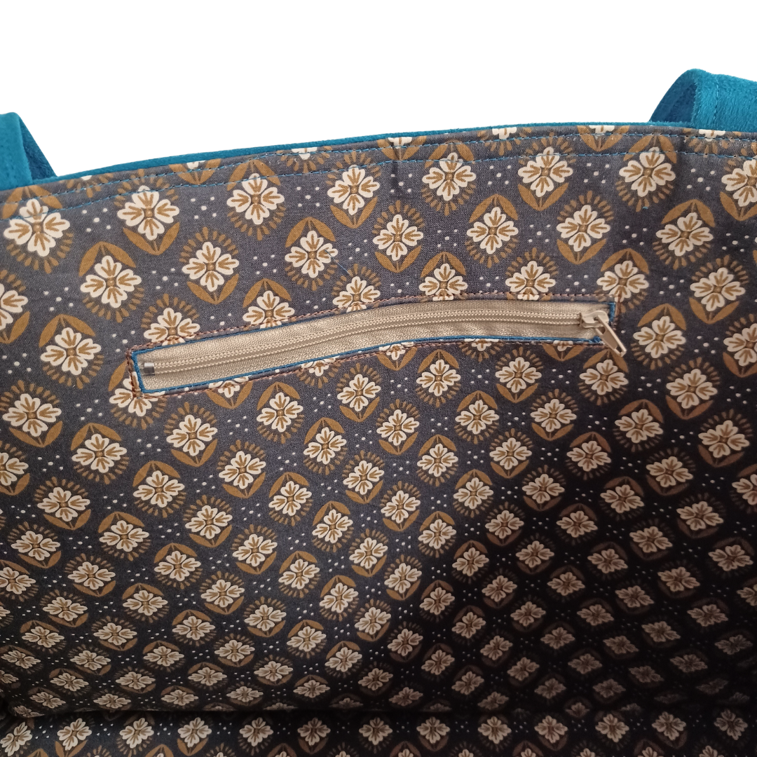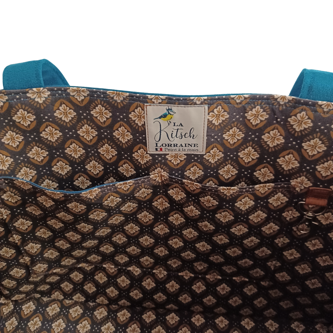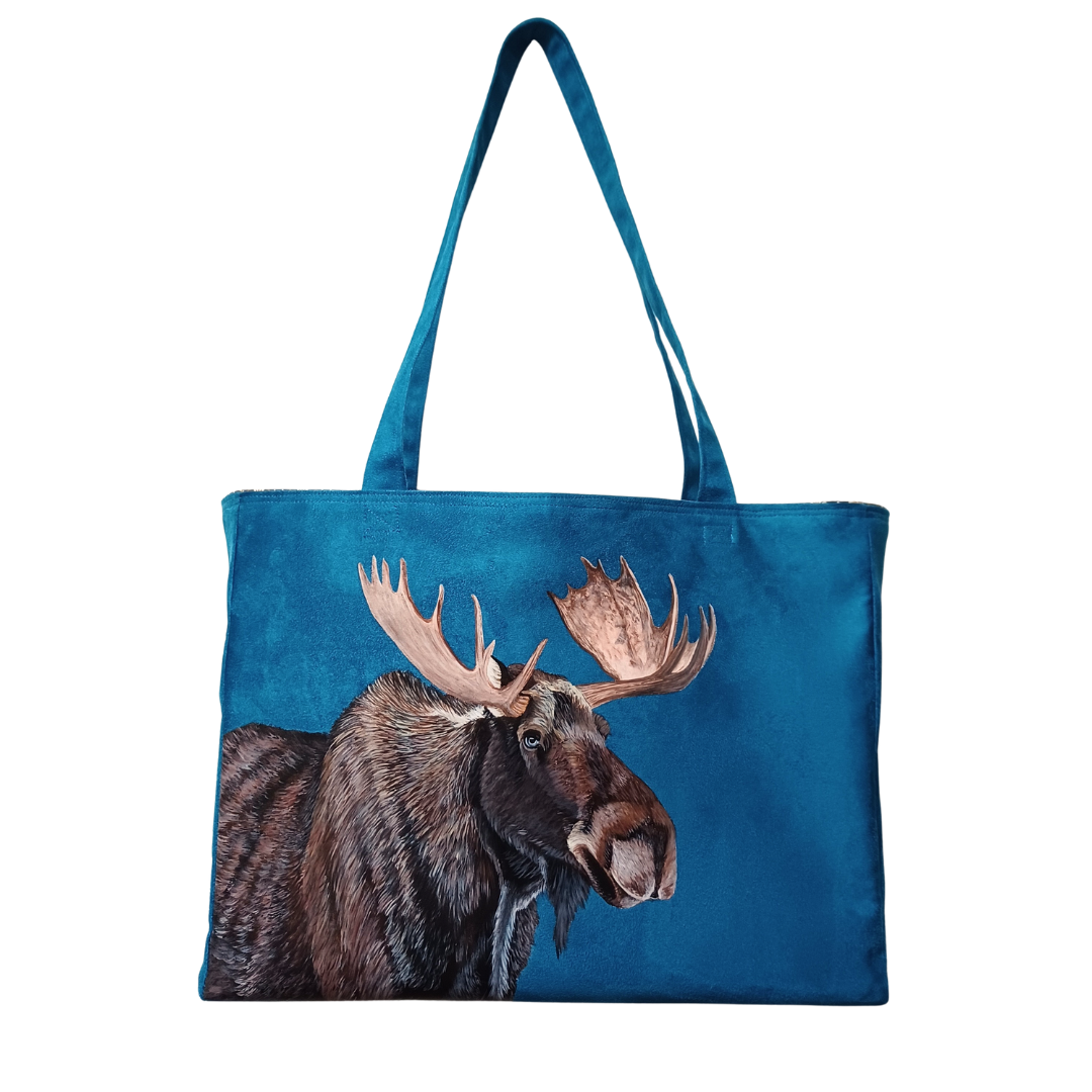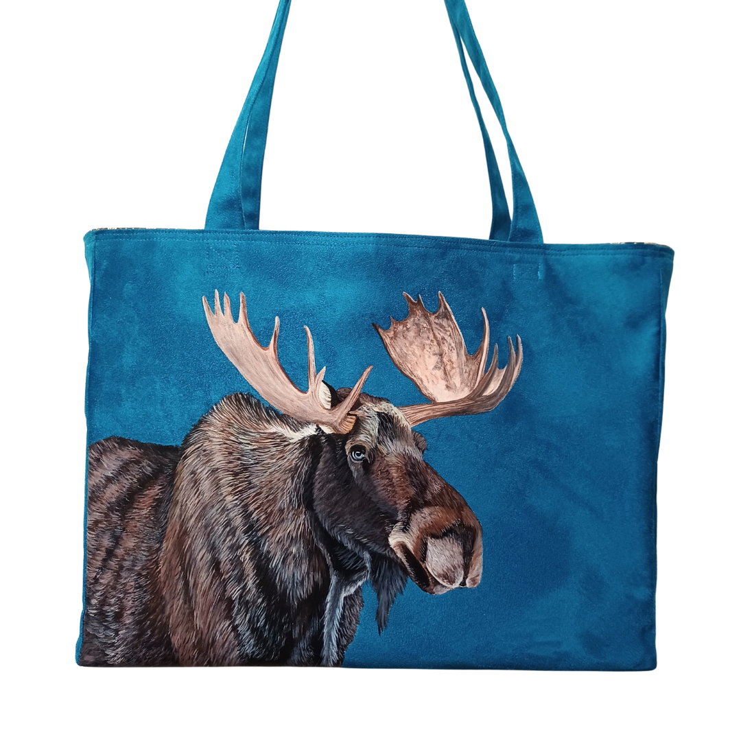 Sac cabas peint à la main, en suédine bleu paon, René l’élan